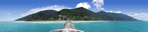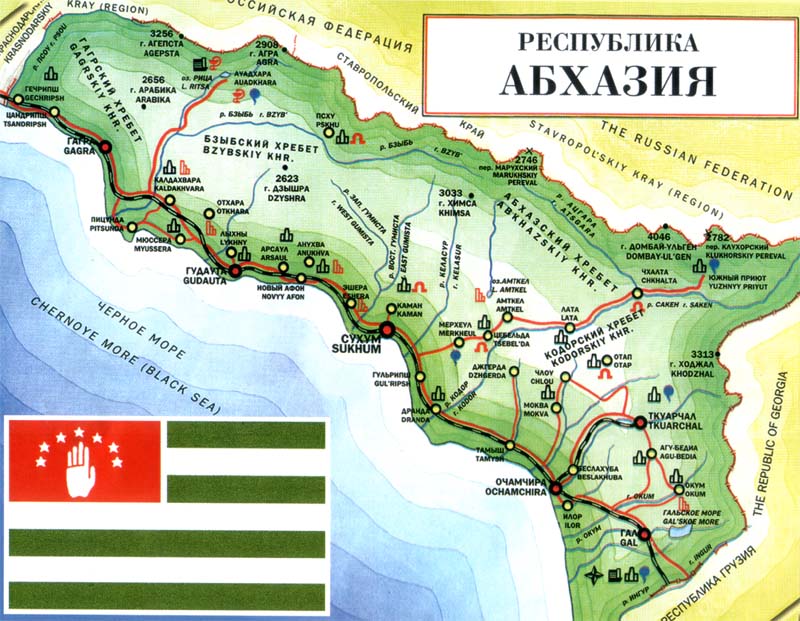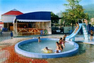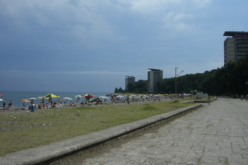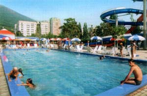 Аквапарк расположен на берегу моря возле гостиницы "Абхазия".